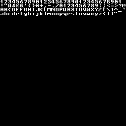 In this example I try to render a bitmaped font using the blitter. This is almost certainly not the optimal way to achieve the goal, so don't use this as an example of how to render text, it's more an example of how to use the blitter.